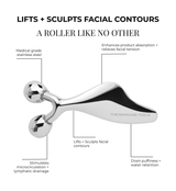 The Contour Sculptor is a professional-grade facial sculpting tool designed to lift, define, and release tension through precision rolling and gua sha-inspired massage.
